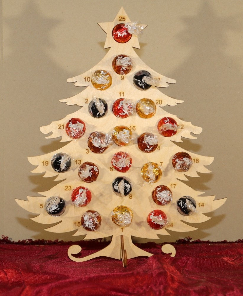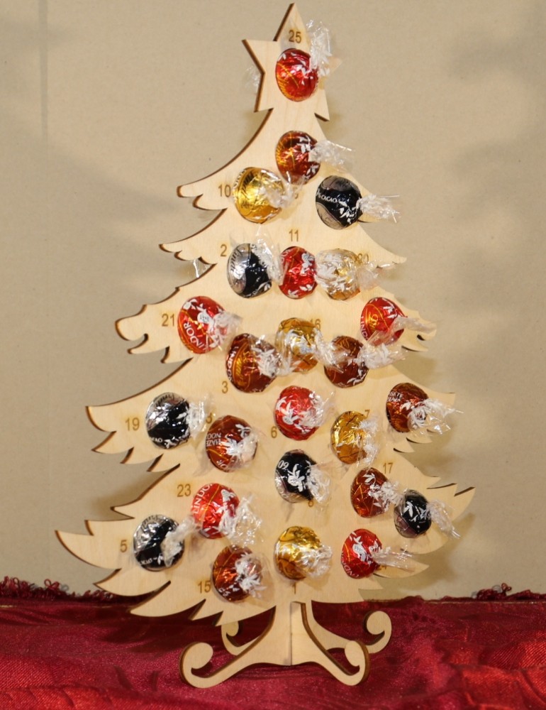 Adventi Lindor fenyő, melybe 25 db Lindor bonbont lehet belehelyezni.