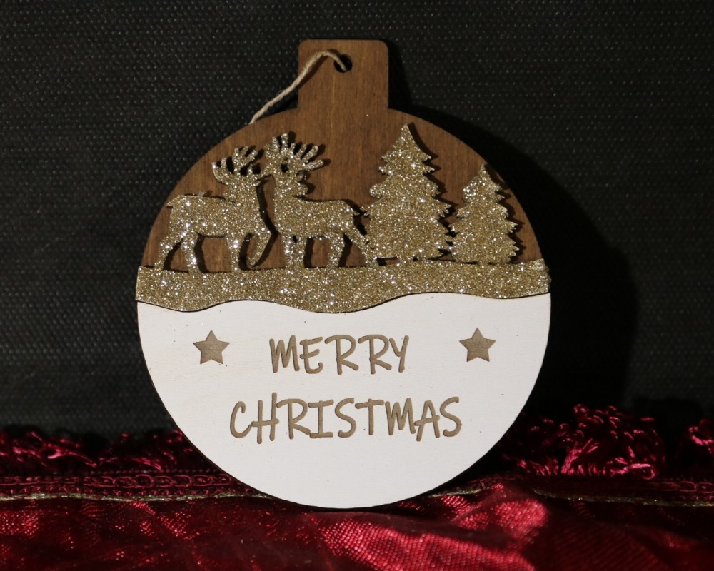 Két réteg összeragasztásával készül. Az alsó réteg dió színre pácolva, a felső réteg festve és gravírozva van, valamint pezsgő színű csillámporral díszített.