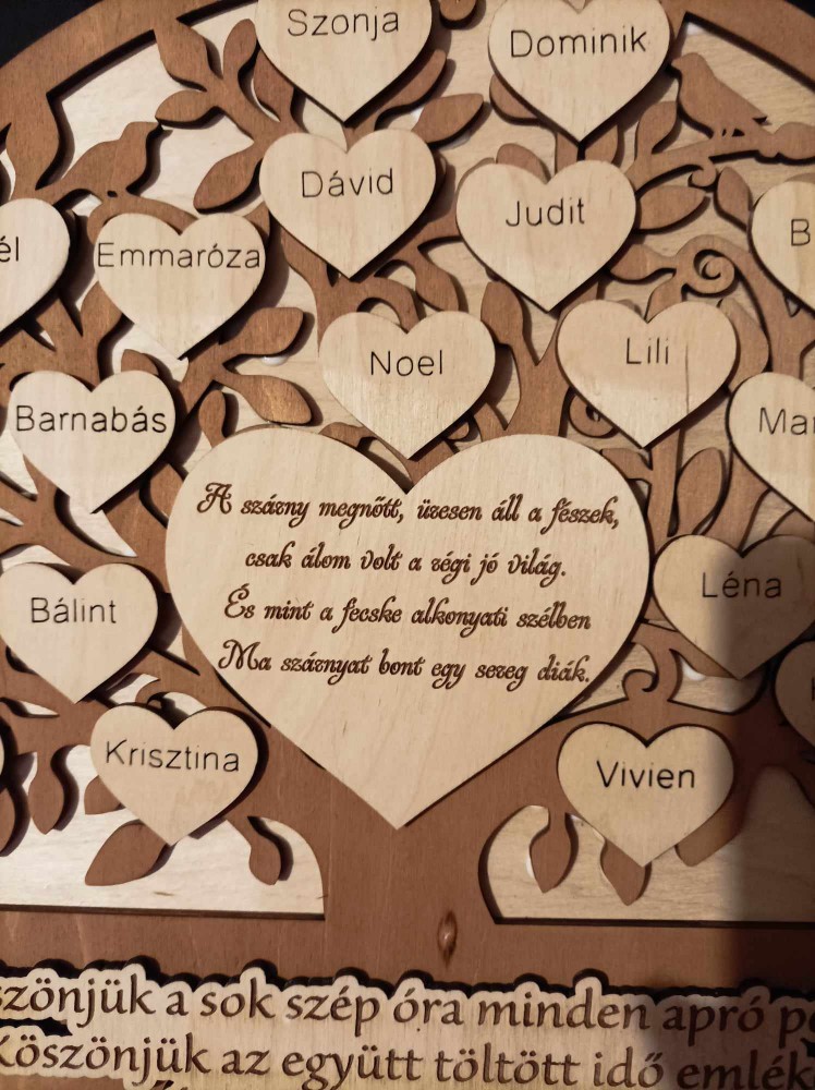 Kitűnő ajándék a végzős diákoktól az osztályfőnöknek, de akár az óvodában is a ballagó csoporttól az óvónőknek. Minden ballagó gyermek nevét egy kis szív rejti, így örök emlék lehet ez a csodálatos ajándék.