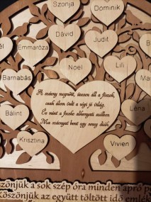 Az életfa alsó részén illetve a középső nagy szívbe egy rövid szöveget, idézetet tudunk díjmentesen gravírozni. Kérem, az idézet szövegét a megjegyzés mezőben tüntesse fel.