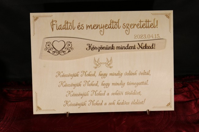 A táblán lévő szöveg személyre szabható. A kívánt változtatásokat a megjegyzés mezőben tudja felénk jelezni. Ha szükséges, a megrendelést követően felvesszük önnel a kapcsolatot további egyeztetés céljából.