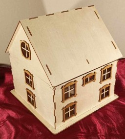Natúr: A ház oldalait és tetejét összeragasztva, a kiegészítő dekorációs elemeket mellécsomagolva kapja meg. Így a házikó tetszőlegesen festhető, díszíthető.