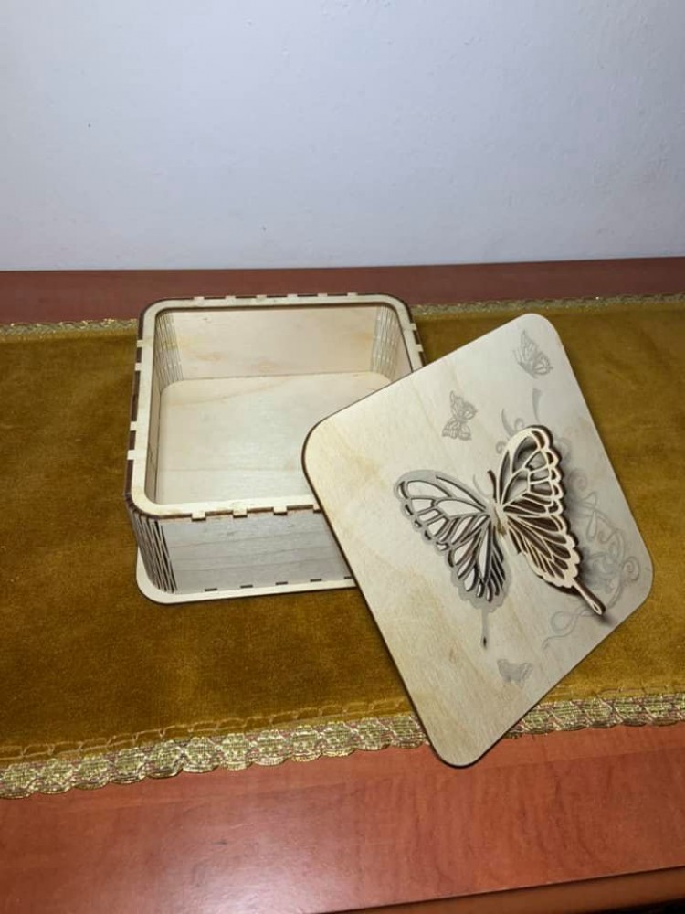 A doboz alapanyaga: 3 mm nyír rétegelt lemez