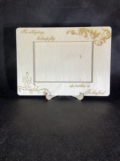 Remek ajándék esküvő alkalmából az örömszülők részére. A képkeret üveget nem tartalmaz. Ajándék asztali tartóval együtt szállítjuk, amely egyaránt lehetővé teszi a fektetett, vagy állított elhelyezését a képkeretnek.