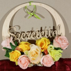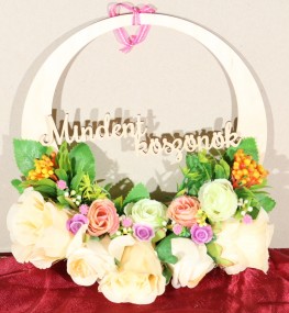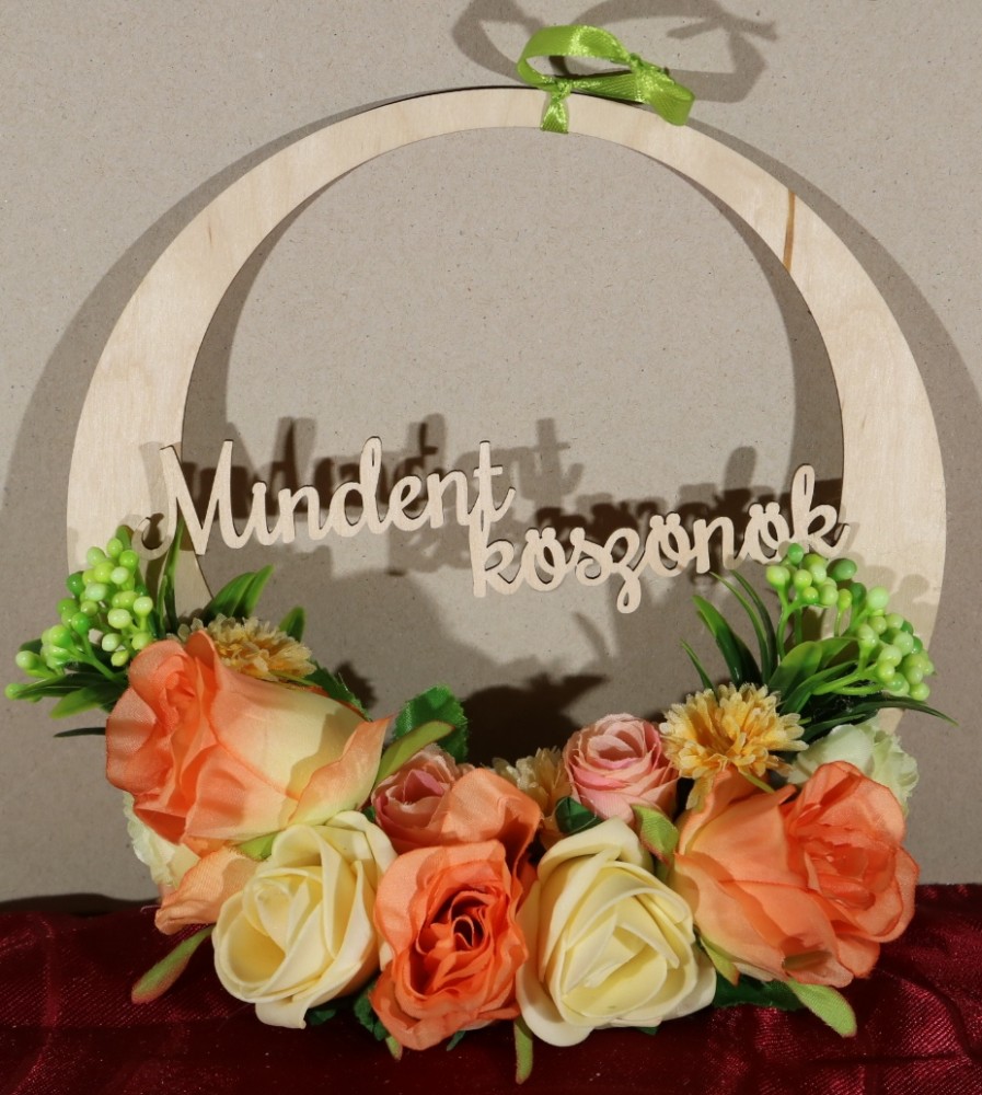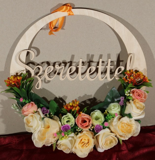 A koszorúk kézzel készülnek, ezért a virágok elhelyezésénél előfordulhat minimális eltérés. Az ajtódíszre Szeretettel vagy Mindent köszönök felirat kérhető. A virágok kívánt színárnyalatát és a feliratot kérem, a megjegyzés mezőben tüntesse fel!