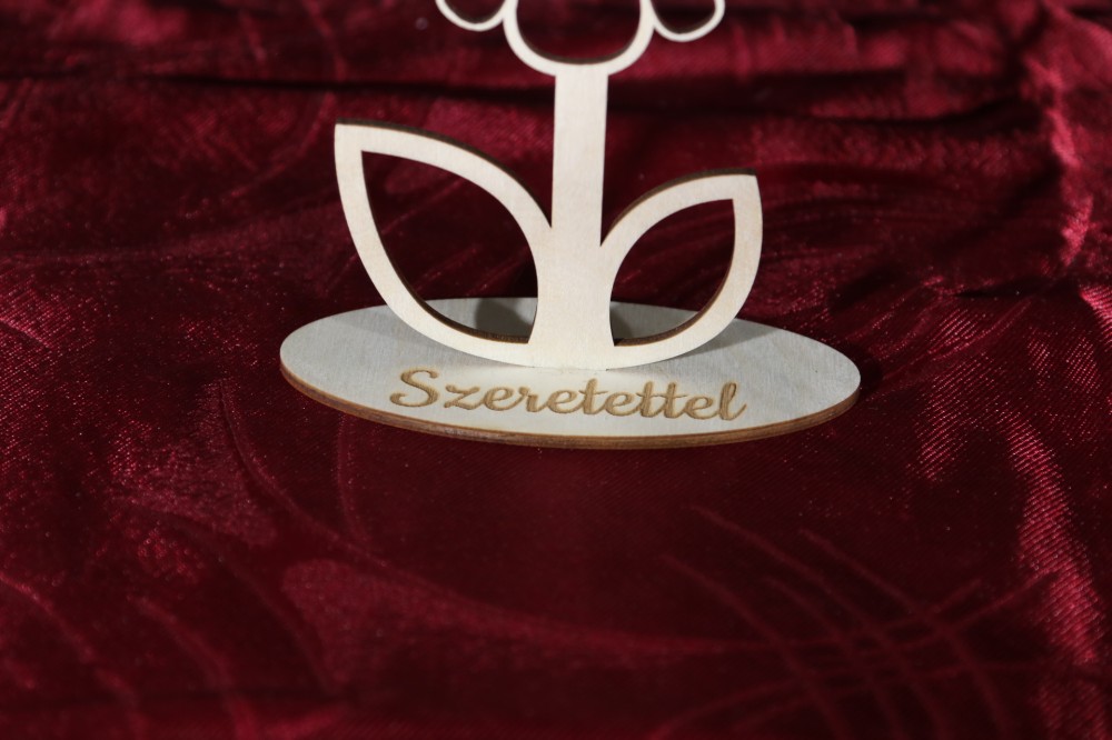 Anyák napjára vagy nőnapra ajándékozható talpas virág. A talp részébe igény szerint nevet vagy rövid köszöntőt gravírozunk. A nevet és a szöveget kérem, a megjegyzés mezőben tüntesse fel!