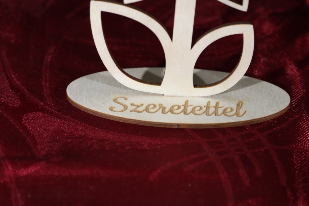 Anyák napjára vagy nőnapra ajándékozható talpas virág. A talp részébe igény szerint nevet vagy rövid köszöntőt gravírozunk. A nevet és a szöveget kérem, a megjegyzés mezőben tüntesse fel!