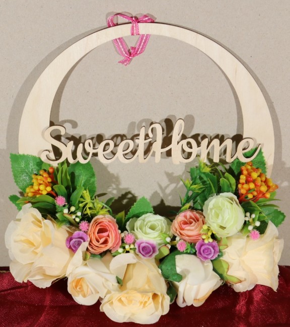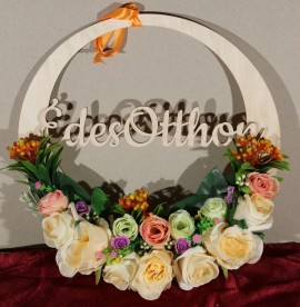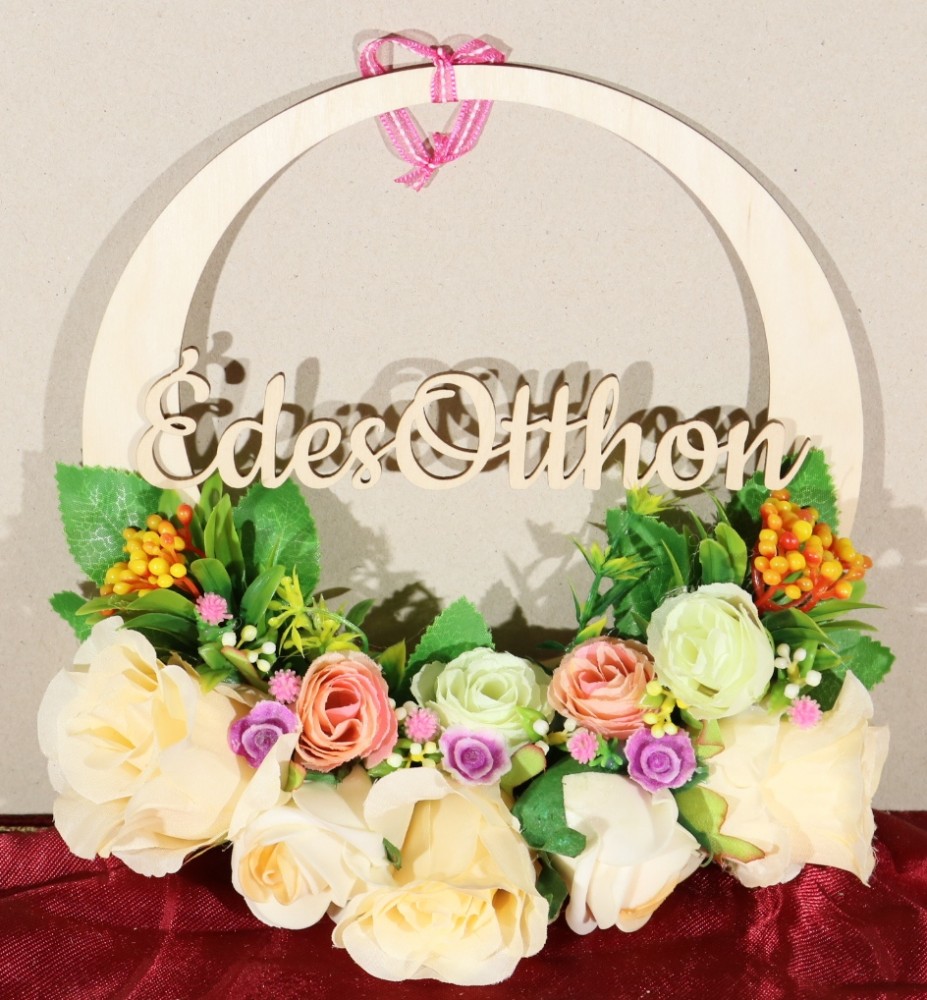 Az ajtódíszek kézzel készülnek, ezért a virágok elhelyezésénél előfordulhat minimális eltérés. Az ajtódíszre Sweet Home vagy Édes Otthon felirat kérhető, melyet kérem, a megjegyzés mezőben tüntessen fel!