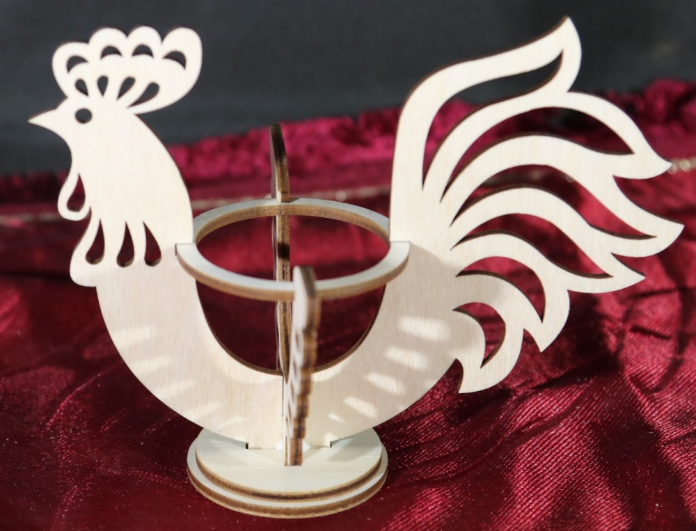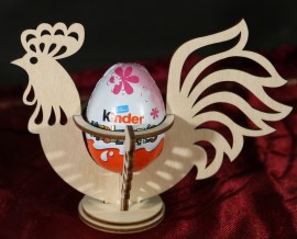 Talon álló kakas, melybe a Kinder tojás is elfér.