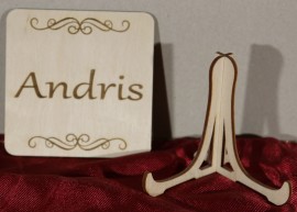 Esküvői ültetőkártya,amely egyben köszönetajándék és poháralátét is lehet a násznépnek. Kérheti egy egyedileg ehhez a kártyához tervezett asztali tartóval is, melyet a megrendelés során a tartozékok menüpont alatt tud kiválasztani.